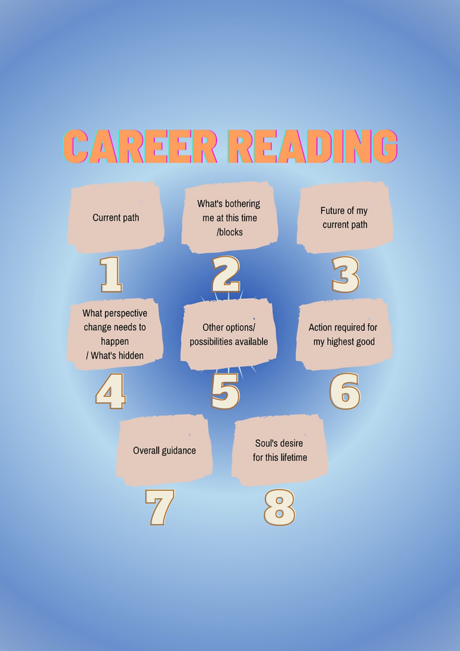 We will use card divination to get answers. I will send you a recorded video link answering 8 questions from the career reading spread.