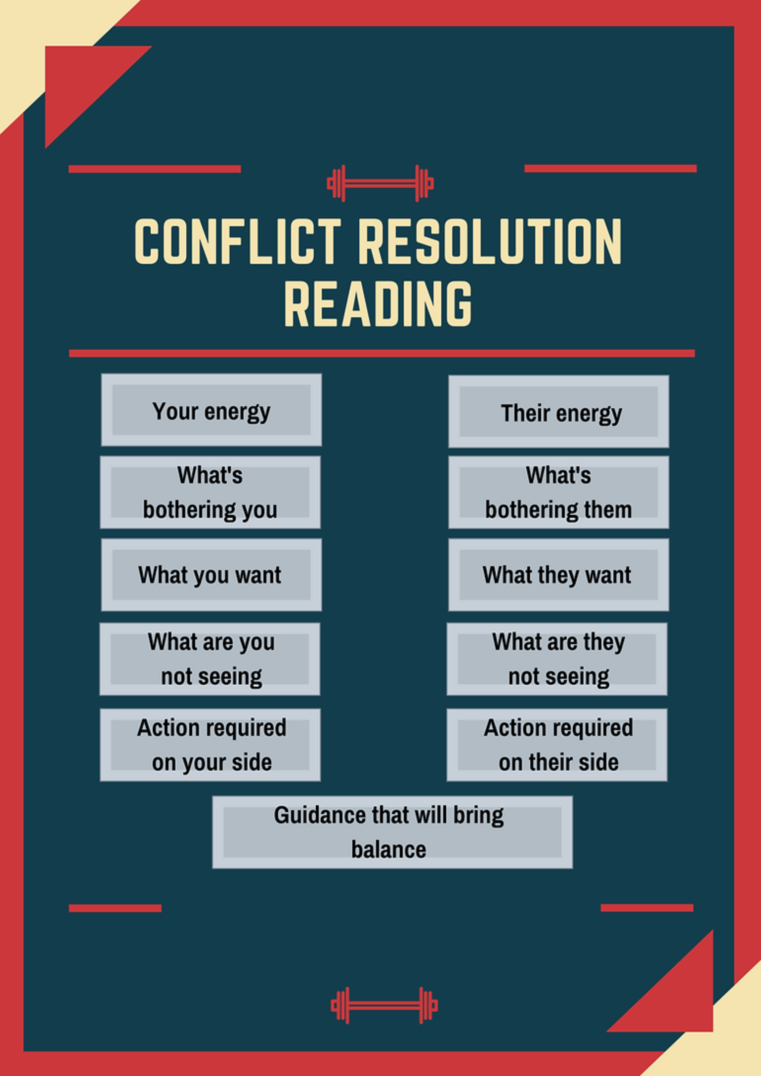 We will use card divination to get answers. I will send you a recorded video link answering 11 questions from the conflict resolution card spread.